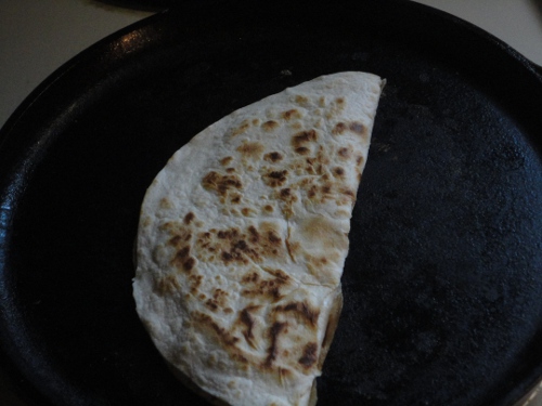After a few seconds I folded it in half, then let it cook until the tortilla started browning.
