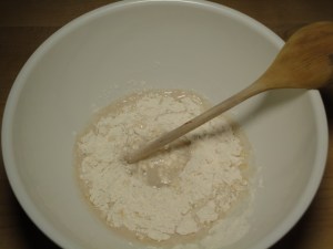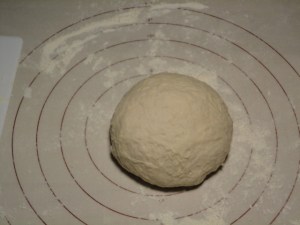 Add about 2/3 of the flour, or until you have a loose dough. Dump the dough out on a mat or your counter.