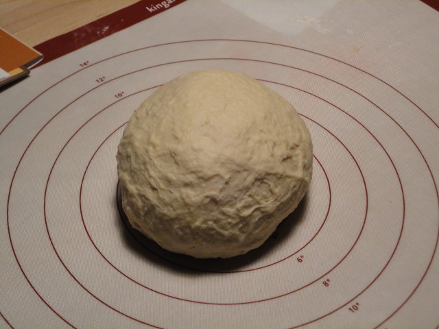 I kneaded it on the counter for maybe ten minutes until it made a smooth ball, and then I placed it into an oiled container to rise until it doubled in size.